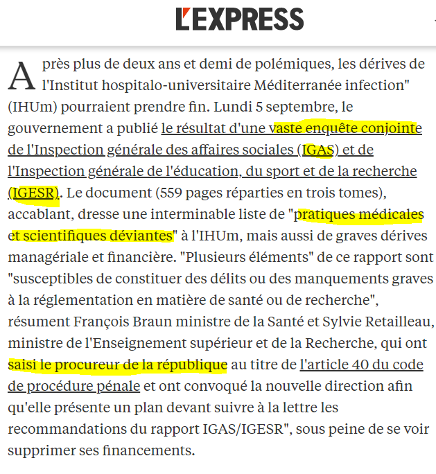 La revue Prescrire juge sévèrement les traitements mis sur le marché. A l’instar de l’IHU de Marseille, n’y aurait-il pas matière à diligenter une enquête ?